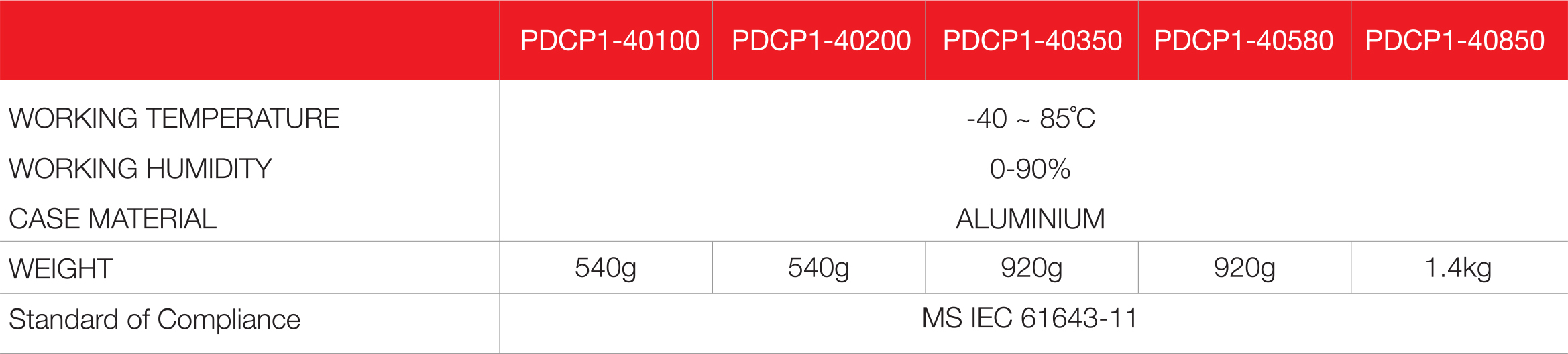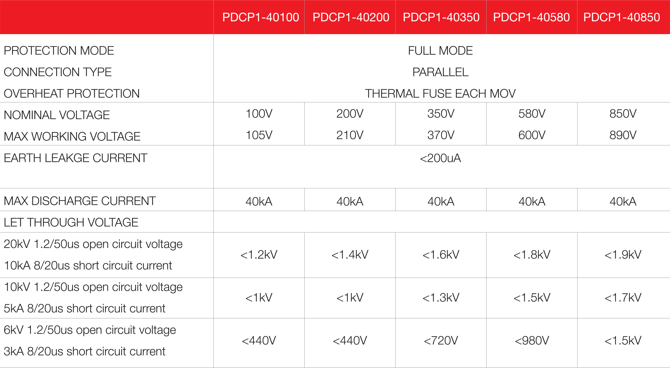 • Full mode protection, 4 MOV protects (P-N), (N-E) & (P-E).